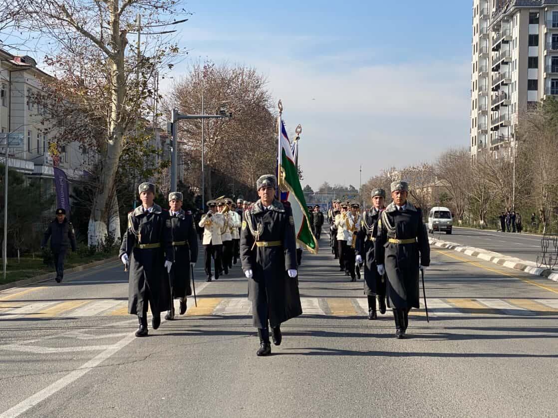 O‘zbekiston Respublikasi Qurolli Kuchlari tashkil topganining 34 yilligi hamda 14 yanvar – Vatan himoyachilari kuni munosabati bilan Termiz shahrining markaziy ko‘chalari bo‘ylab harbiy yurish tadbirlari o‘tkazildi.